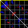 This matrix displays the maximum distance fluctuations between all pairs of CA atoms and between the two extreme conformations that were computed for this mode (DQMIN/DQMAX). Distance increases are plotted in blue and decreases in red for the strongest 10% of the residue pair distance changes. Every pixel corresponds to a single residue. Grey lines are drawn every 10 residues, yellow lines every 100 residues (counting from the upper left corner).