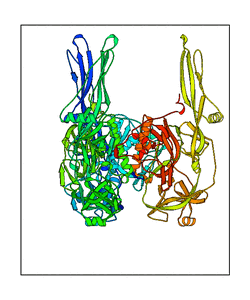 These views are prepared from three orthologuous viewpoints with MolScript. Secondary structures are determined from the C-alpha atom positions of your protein (N-terminal blue, C-terminal red).