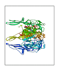 CAUTION: The amplitude range presented in these views corresponds to the highest (DQMAX) and lowest (DQMIN) perturbations chosen for this mode. Secondary structures can break down (and thus disappear from the animation) if the applied amplitudes are too large for Molscript to identify them. The choice of the amplitude is not a NMA result, but has to be done by the user on physical grounds. To change the amplitude range, you can recompute the animation of the desired mode by using the "Compute additional perturbed models with elNémo" section on the results page of your job.