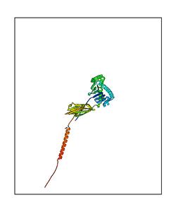 CAUTION: The amplitude range presented in these views corresponds to the highest (DQMAX) and lowest (DQMIN) perturbations chosen for this mode. Secondary structures can break down (and thus disappear from the animation) if the applied amplitudes are too large for Molscript to identify them. The choice of the amplitude is not a NMA result, but has to be done by the user on physical grounds. To change the amplitude range, you can recompute the animation of the desired mode by using the "Compute additional perturbed models with elNémo" section on the results page of your job.