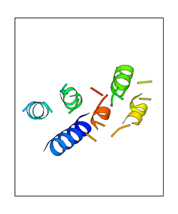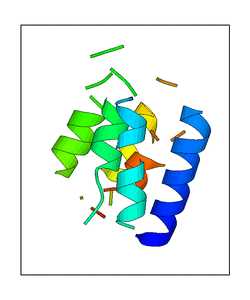 These views are prepared from three orthologuous viewpoints with MolScript. Secondary structures are determined from the C-alpha atom positions of your protein (N-terminal blue, C-terminal red).