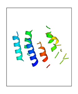 These views are prepared from three orthologuous viewpoints with MolScript. Secondary structures are determined from the C-alpha atom positions of your protein (N-terminal blue, C-terminal red).