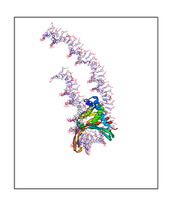 CAUTION: The amplitude range presented in these views corresponds to the highest (DQMAX) and lowest (DQMIN) perturbations chosen for this mode. Secondary structures can break down (and thus disappear from the animation) if the applied amplitudes are too large for Molscript to identify them. The choice of the amplitude is not a NMA result, but has to be done by the user on physical grounds. To change the amplitude range, you can recompute the animation of the desired mode by using the "Compute additional perturbed models with elNémo" section on the results page of your job.