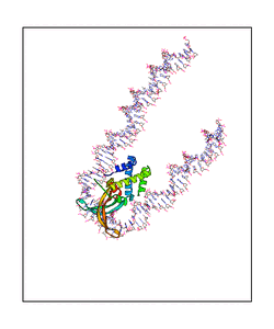 CAUTION: The amplitude range presented in these views corresponds to the highest (DQMAX) and lowest (DQMIN) perturbations chosen for this mode. Secondary structures can break down (and thus disappear from the animation) if the applied amplitudes are too large for Molscript to identify them. The choice of the amplitude is not a NMA result, but has to be done by the user on physical grounds. To change the amplitude range, you can recompute the animation of the desired mode by using the "Compute additional perturbed models with elNémo" section on the results page of your job.
