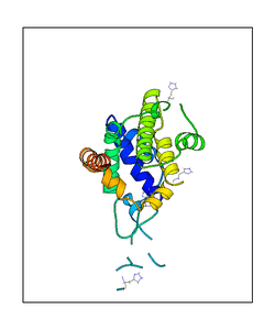 These views are prepared from three orthologuous viewpoints with MolScript. Secondary structures are determined from the C-alpha atom positions of your protein (N-terminal blue, C-terminal red).