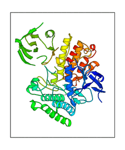 These views are prepared from three orthologuous viewpoints with MolScript. Secondary structures are determined from the C-alpha atom positions of your protein (N-terminal blue, C-terminal red).