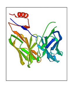 These views are prepared from three orthologuous viewpoints with MolScript. Secondary structures are determined from the C-alpha atom positions of your protein (N-terminal blue, C-terminal red).