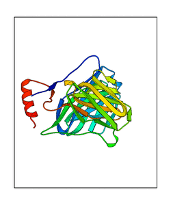 These views are prepared from three orthologuous viewpoints with MolScript. Secondary structures are determined from the C-alpha atom positions of your protein (N-terminal blue, C-terminal red).