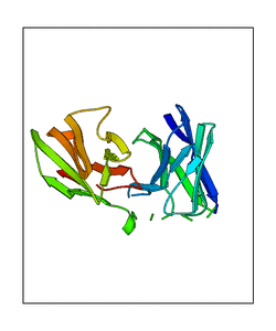 These views are prepared from three orthologuous viewpoints with MolScript. Secondary structures are determined from the C-alpha atom positions of your protein (N-terminal blue, C-terminal red).