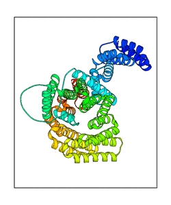 CAUTION: The amplitude range presented in these views corresponds to the highest (DQMAX) and lowest (DQMIN) perturbations chosen for this mode. Secondary structures can break down (and thus disappear from the animation) if the applied amplitudes are too large for Molscript to identify them. The choice of the amplitude is not a NMA result, but has to be done by the user on physical grounds. To change the amplitude range, you can recompute the animation of the desired mode by using the "Compute additional perturbed models with elNémo" section on the results page of your job.