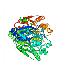 These views are prepared from three orthologuous viewpoints with MolScript. Secondary structures are determined from the C-alpha atom positions of your protein (N-terminal blue, C-terminal red).