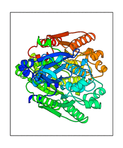 These views are prepared from three orthologuous viewpoints with MolScript. Secondary structures are determined from the C-alpha atom positions of your protein (N-terminal blue, C-terminal red).
