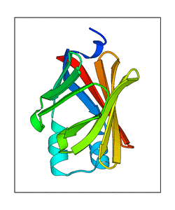 These views are prepared from three orthologuous viewpoints with MolScript. Secondary structures are determined from the C-alpha atom positions of your protein (N-terminal blue, C-terminal red).