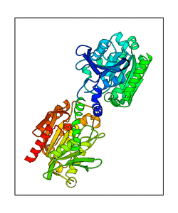 (N-terminal blue, C-terminal red).