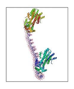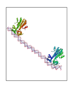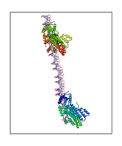 CAUTION: The amplitude range presented in these views corresponds to the highest (DQMAX) and lowest (DQMIN) perturbations chosen for this mode. Secondary structures can break down (and thus disappear from the animation) if the applied amplitudes are too large for Molscript to identify them. The choice of the amplitude is not a NMA result, but has to be done by the user on physical grounds. To change the amplitude range, you can recompute the animation of the desired mode by using the "Compute additional perturbed models with elNémo" section on the results page of your job.
