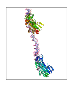 CAUTION: The amplitude range presented in these views corresponds to the highest (DQMAX) and lowest (DQMIN) perturbations chosen for this mode. Secondary structures can break down (and thus disappear from the animation) if the applied amplitudes are too large for Molscript to identify them. The choice of the amplitude is not a NMA result, but has to be done by the user on physical grounds. To change the amplitude range, you can recompute the animation of the desired mode by using the "Compute additional perturbed models with elNémo" section on the results page of your job.