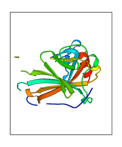 These views are prepared from three orthologuous viewpoints with MolScript. Secondary structures are determined from the C-alpha atom positions of your protein (N-terminal blue, C-terminal red).