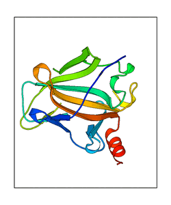These views are prepared from three orthologuous viewpoints with MolScript. Secondary structures are determined from the C-alpha atom positions of your protein (N-terminal blue, C-terminal red).