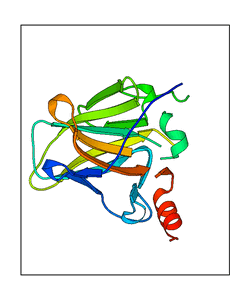 These views are prepared from three orthologuous viewpoints with MolScript. Secondary structures are determined from the C-alpha atom positions of your protein (N-terminal blue, C-terminal red).
