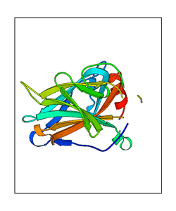 These views are prepared from three orthologuous viewpoints with MolScript. Secondary structures are determined from the C-alpha atom positions of your protein (N-terminal blue, C-terminal red).