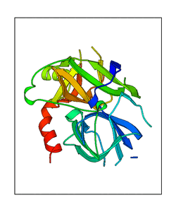 These views are prepared from three orthologuous viewpoints with MolScript. Secondary structures are determined from the C-alpha atom positions of your protein (N-terminal blue, C-terminal red).