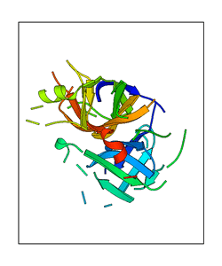 CAUTION: The amplitude range presented in these views corresponds to the highest (DQMAX) and lowest (DQMIN) perturbations chosen for this mode. Secondary structures can break down (and thus disappear from the animation) if the applied amplitudes are too large for Molscript to identify them. The choice of the amplitude is not a NMA result, but has to be done by the user on physical grounds. To change the amplitude range, you can recompute the animation of the desired mode by using the "Compute additional perturbed models with elNémo" section on the results page of your job.