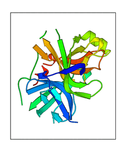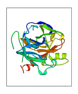 These views are prepared from three orthologuous viewpoints with MolScript. Secondary structures are determined from the C-alpha atom positions of your protein (N-terminal blue, C-terminal red).