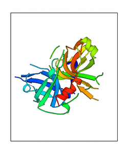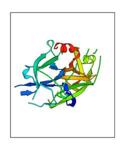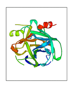 These views are prepared from three orthologuous viewpoints with MolScript. Secondary structures are determined from the C-alpha atom positions of your protein (N-terminal blue, C-terminal red).