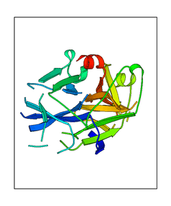 These views are prepared from three orthologuous viewpoints with MolScript. Secondary structures are determined from the C-alpha atom positions of your protein (N-terminal blue, C-terminal red).