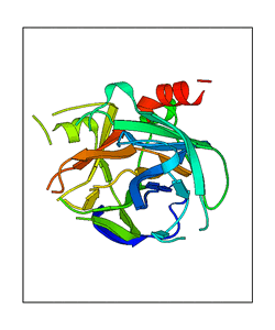 These views are prepared from three orthologuous viewpoints with MolScript. Secondary structures are determined from the C-alpha atom positions of your protein (N-terminal blue, C-terminal red).