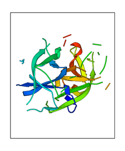 These views are prepared from three orthologuous viewpoints with MolScript. Secondary structures are determined from the C-alpha atom positions of your protein (N-terminal blue, C-terminal red).