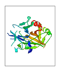 These views are prepared from three orthologuous viewpoints with MolScript. Secondary structures are determined from the C-alpha atom positions of your protein (N-terminal blue, C-terminal red).