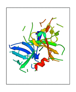 These views are prepared from three orthologuous viewpoints with MolScript. Secondary structures are determined from the C-alpha atom positions of your protein (N-terminal blue, C-terminal red).