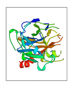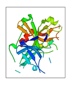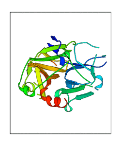 These views are prepared from three orthologuous viewpoints with MolScript. Secondary structures are determined from the C-alpha atom positions of your protein (N-terminal blue, C-terminal red).