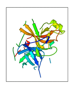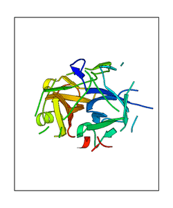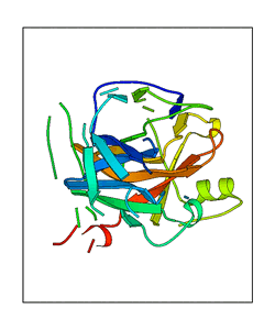 These views are prepared from three orthologuous viewpoints with MolScript. Secondary structures are determined from the C-alpha atom positions of your protein (N-terminal blue, C-terminal red).