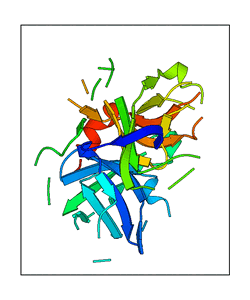 These views are prepared from three orthologuous viewpoints with MolScript. Secondary structures are determined from the C-alpha atom positions of your protein (N-terminal blue, C-terminal red).