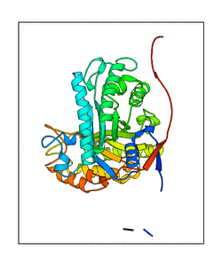 These views are prepared from three orthologuous viewpoints with MolScript. Secondary structures are determined from the C-alpha atom positions of your protein (N-terminal blue, C-terminal red).