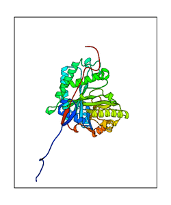 These views are prepared from three orthologuous viewpoints with MolScript. Secondary structures are determined from the C-alpha atom positions of your protein (N-terminal blue, C-terminal red).
