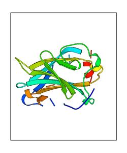 These views are prepared from three orthologuous viewpoints with MolScript. Secondary structures are determined from the C-alpha atom positions of your protein (N-terminal blue, C-terminal red).