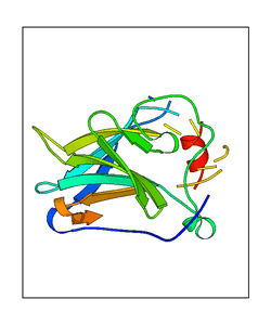 These views are prepared from three orthologuous viewpoints with MolScript. Secondary structures are determined from the C-alpha atom positions of your protein (N-terminal blue, C-terminal red).