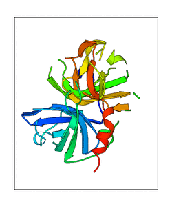 These views are prepared from three orthologuous viewpoints with MolScript. Secondary structures are determined from the C-alpha atom positions of your protein (N-terminal blue, C-terminal red).