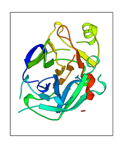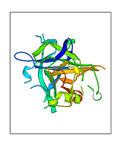 These views are prepared from three orthologuous viewpoints with MolScript. Secondary structures are determined from the C-alpha atom positions of your protein (N-terminal blue, C-terminal red).