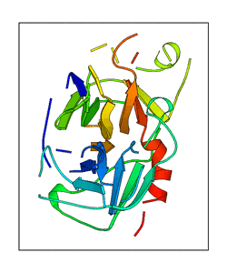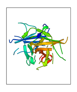 These views are prepared from three orthologuous viewpoints with MolScript. Secondary structures are determined from the C-alpha atom positions of your protein (N-terminal blue, C-terminal red).