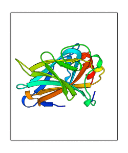 These views are prepared from three orthologuous viewpoints with MolScript. Secondary structures are determined from the C-alpha atom positions of your protein (N-terminal blue, C-terminal red).