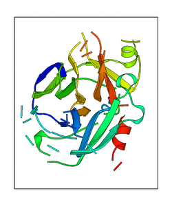 These views are prepared from three orthologuous viewpoints with MolScript. Secondary structures are determined from the C-alpha atom positions of your protein (N-terminal blue, C-terminal red).