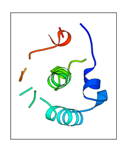 These views are prepared from three orthologuous viewpoints with MolScript. Secondary structures are determined from the C-alpha atom positions of your protein (N-terminal blue, C-terminal red).