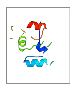 These views are prepared from three orthologuous viewpoints with MolScript. Secondary structures are determined from the C-alpha atom positions of your protein (N-terminal blue, C-terminal red).