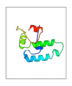 These views are prepared from three orthologuous viewpoints with MolScript. Secondary structures are determined from the C-alpha atom positions of your protein (N-terminal blue, C-terminal red).