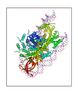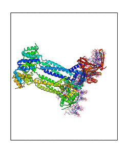 CAUTION: The amplitude range presented in these views corresponds to the highest (DQMAX) and lowest (DQMIN) perturbations chosen for this mode. Secondary structures can break down (and thus disappear from the animation) if the applied amplitudes are too large for Molscript to identify them. The choice of the amplitude is not a NMA result, but has to be done by the user on physical grounds. To change the amplitude range, you can recompute the animation of the desired mode by using the "Compute additional perturbed models with elNémo" section on the results page of your job.