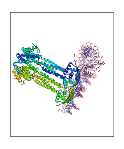 CAUTION: The amplitude range presented in these views corresponds to the highest (DQMAX) and lowest (DQMIN) perturbations chosen for this mode. Secondary structures can break down (and thus disappear from the animation) if the applied amplitudes are too large for Molscript to identify them. The choice of the amplitude is not a NMA result, but has to be done by the user on physical grounds. To change the amplitude range, you can recompute the animation of the desired mode by using the "Compute additional perturbed models with elNémo" section on the results page of your job.